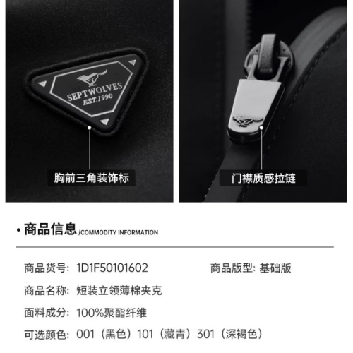 七匹狼夹棉立领夹克男秋冬新款通勤行政防风加厚外套