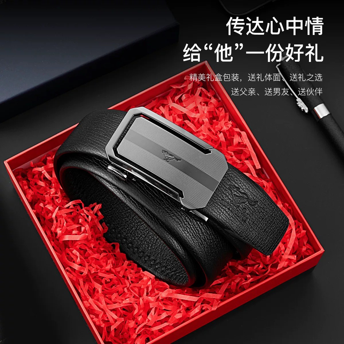 七匹狼头层牛皮真皮皮带男士新款裤带经典时尚合金自动扣男装腰带