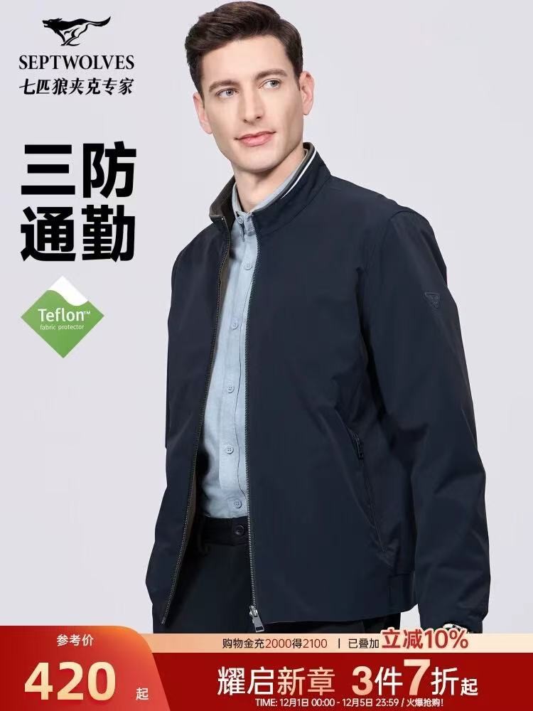 七匹狼双面穿立领夹克男装2025秋季新款商务中年行政外套